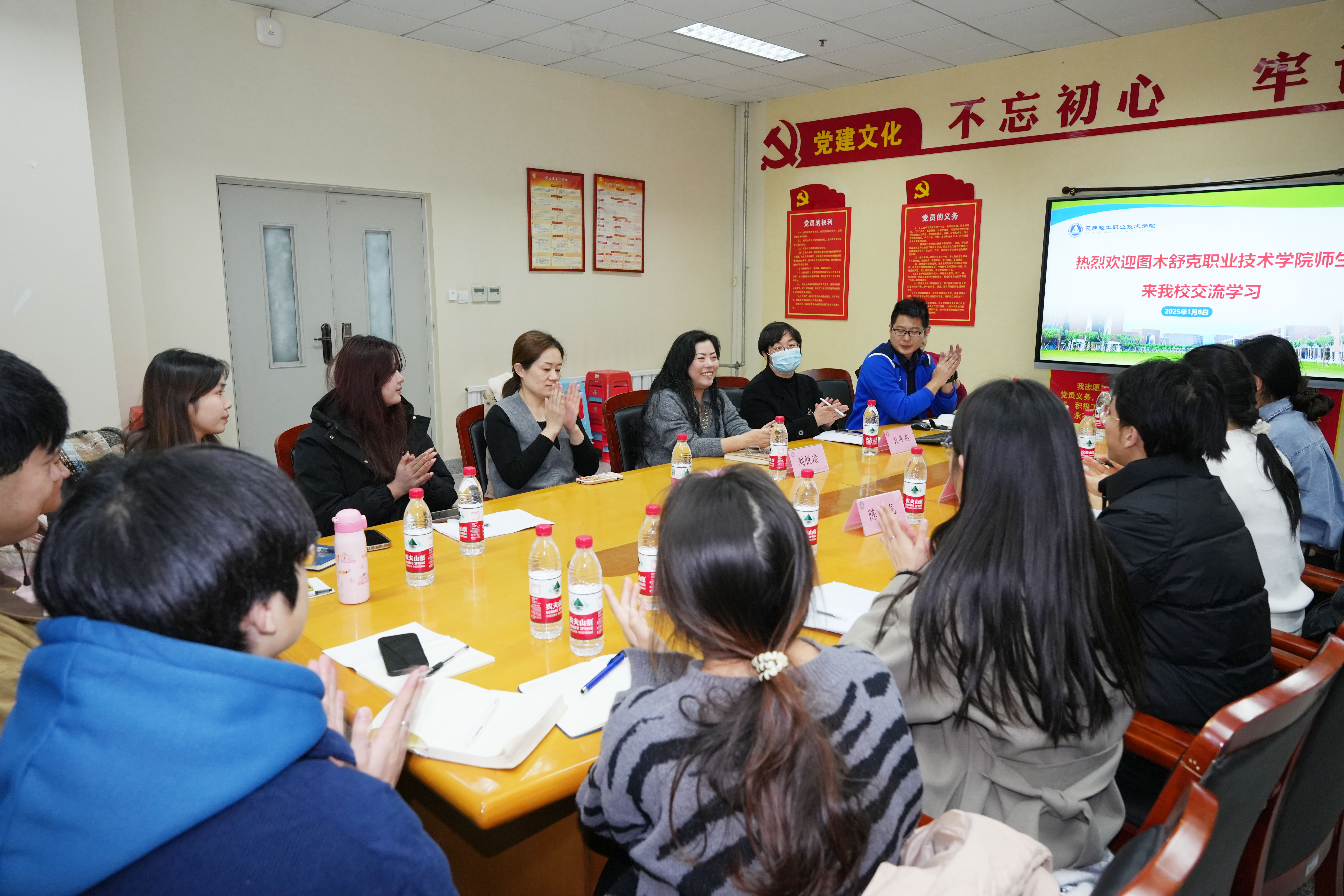 1月8日上午,学院为来访的13名新疆图木舒克职业技术学院师生举行欢迎会,这是自2023年12月学院与图木舒克职业技术签订《对口支援合作意向书》之后到校访学的第四批师生。学院副院长刘悦凌、经济管理学院院长只井杰、机械工程学院副院长蒋建文、教务部副部长马绪鹏等出席会议。