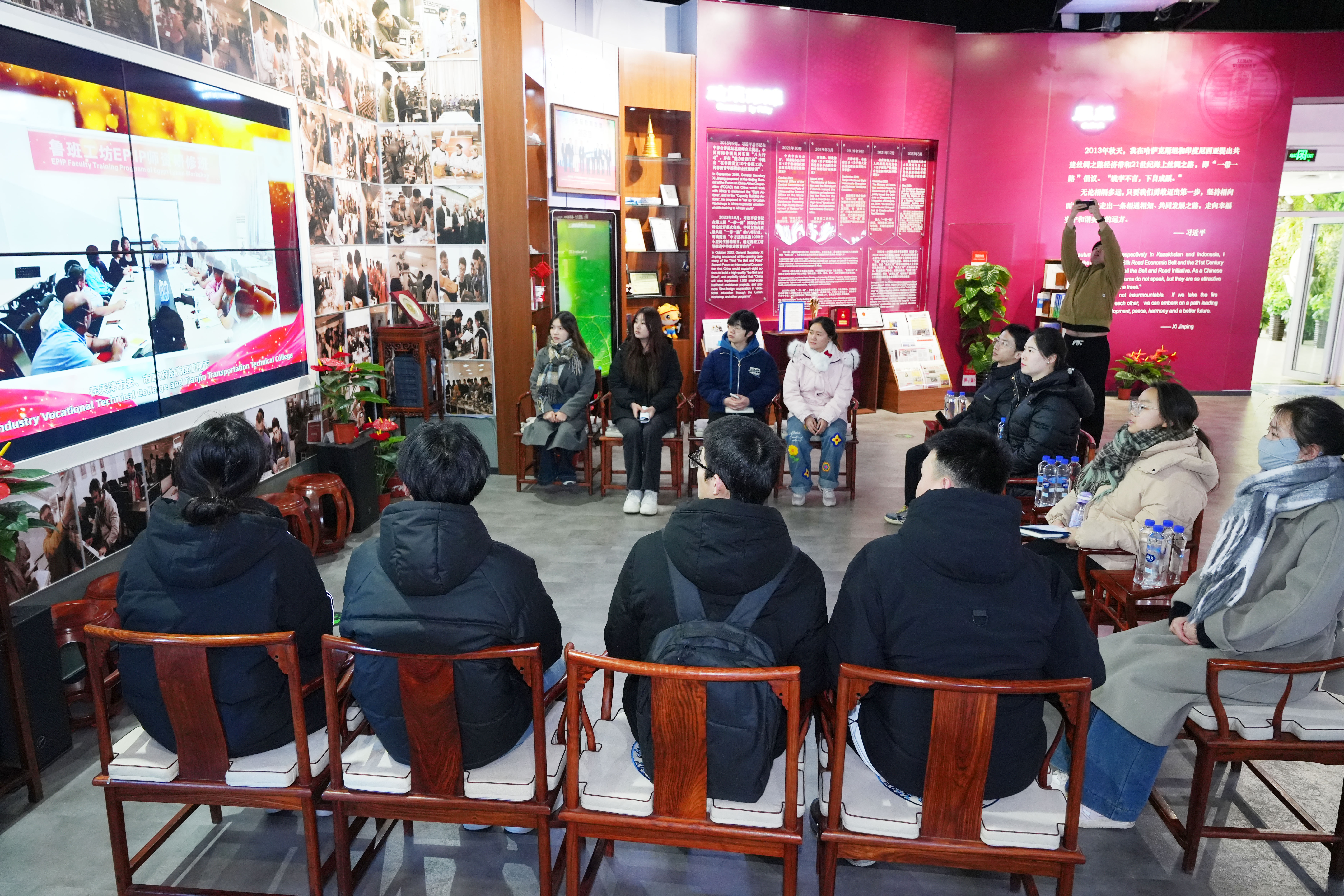 欢迎会结束后,图职院师生参观了鲁班工坊建设·体验馆,系统了解了鲁班工坊的建设背景、建设历程、核心内涵、师资建设、人文交流等情况,以及近年来天津职业教育在国际化方面取得的标志性成果。参观结束后,图职院师生分别前往机械工程学院、经济管理学院进行“生产单元数字化改造”“直播电商”“电子商务”赛项的专题研讨。