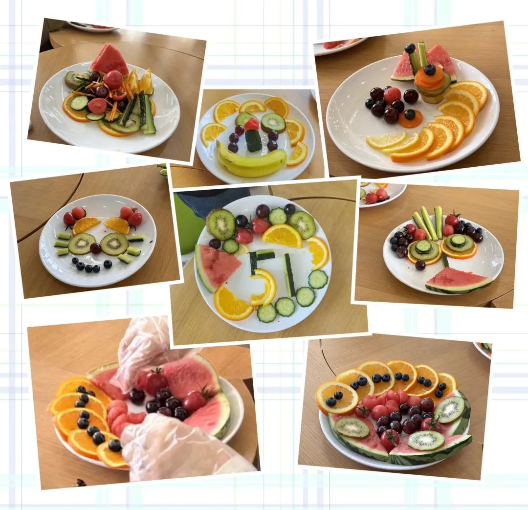 同学们用西瓜、香蕉、猕猴桃、火龙果等食材为画笔,在拼盘上勾勒劳动之美,果酸清甜与艺术灵感碰撞,让"劳动创造幸福"化作釉色流淌的视觉诗篇。