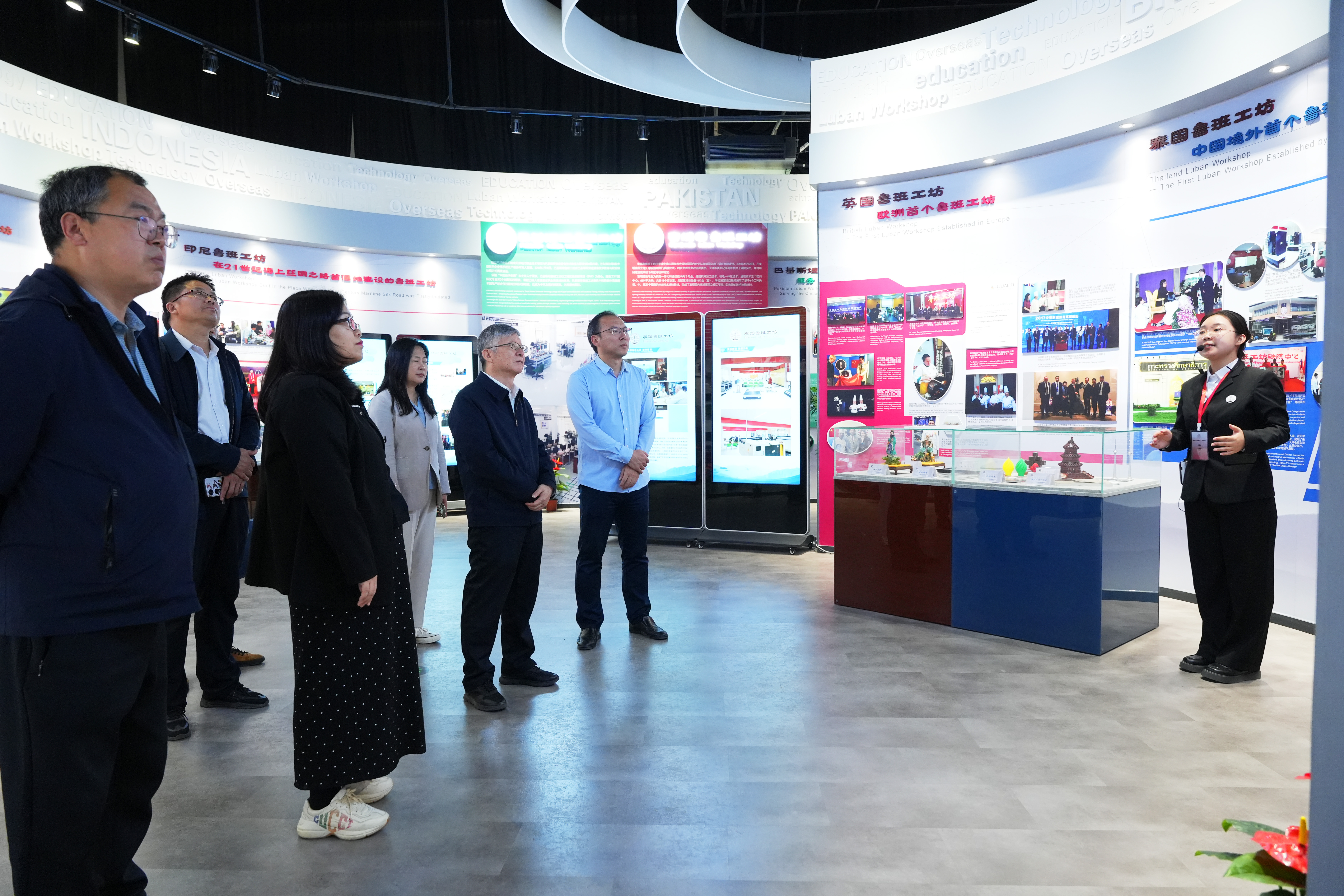 课题组先参观了学院鲁班工坊建设·体验馆,详细了解了鲁班工坊的建设历程、人文交流、相关标志性成果等方面内容,副书记李子铮代表学院向课题组对轻工学院的关心关注表示感谢,并向课题组介绍了学院发展历程、办学优势和取得的各项成果。
